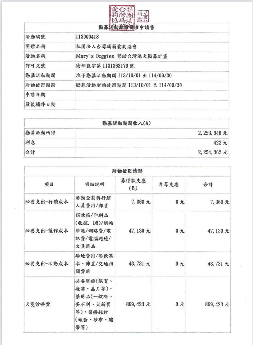 Mary's Doggies 幫助台灣浪犬勸募計畫 / 執行成果報告