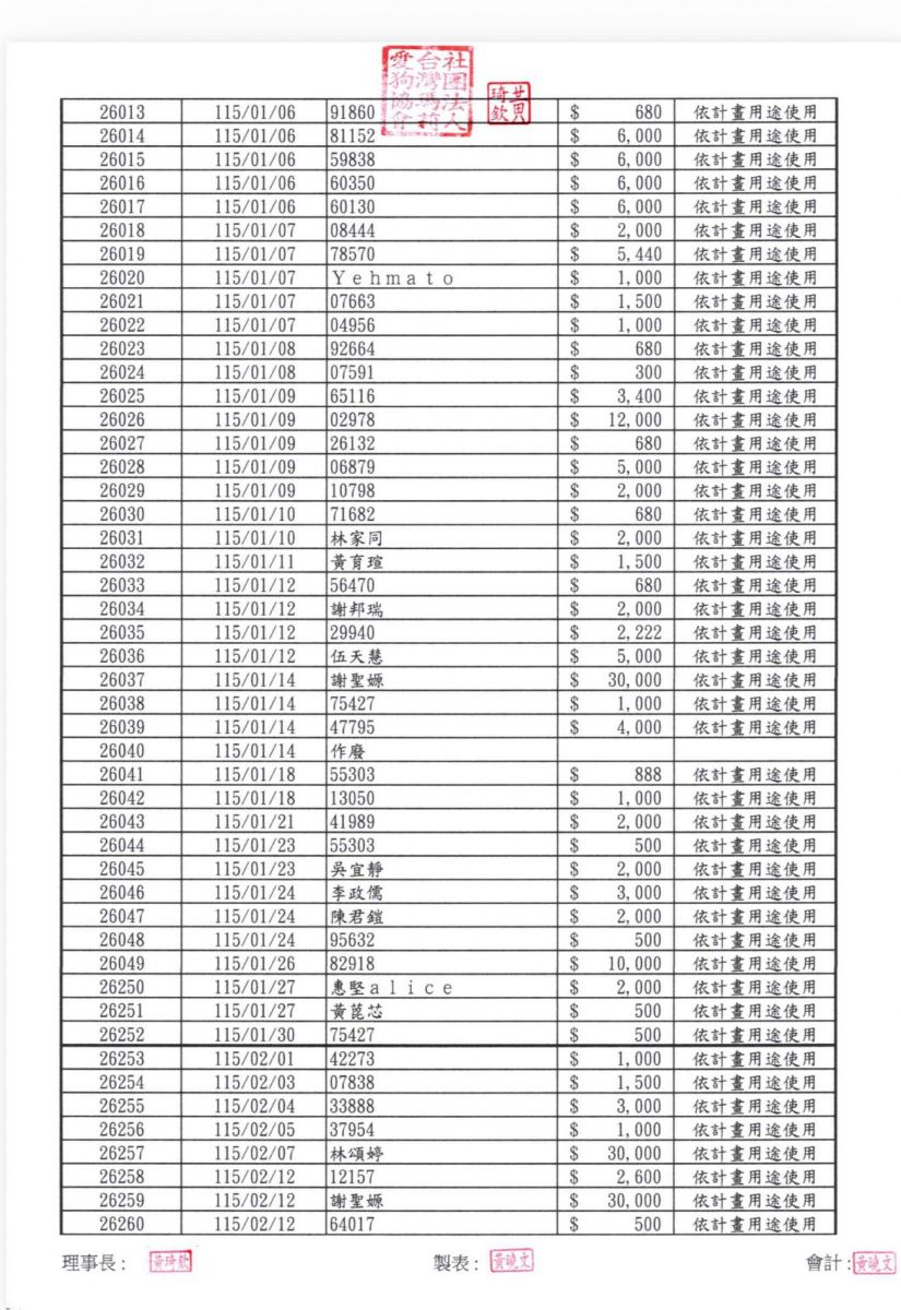 勸募專戶#20925  捐款名錄