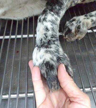 可憐的Vidal 因為被捕獸夾住,失去好幾隻腳趾。我們在新店⼭區餵養Vidal 和牠的家⼈多年,每天花很多時間往返餵食,擔⼼心牠們的安全和遭遇。這樣的往返花掉我們平常訓練、到獸醫院和進行其他文書工作的時間。有天我們決定要救援Vidal 和牠的家人,開始在每週餵養時設下捕捉陷阱。第一次回去,我們食物陷阱抓到了了許多之前沒看過的狗。Vidal 和家人似乎知道我們會回去餵食,並沒有落入圈套。我們發現這些狗是來自附近社區裡的⼀個建築工地,工地裡住了很多狗。那裡的工人、守衛和工地主任不僅不幫忙我們抓狗,還會阻止救援牠們。 住在那邊的狗都沒有結紮,也都沒有植晶片或施打狂犬病疫苗。牠們每天這樣生活在一起,我們覺得如果不積極處理,⺟狗很快就會懷孕為該地區帶來更多浪犬。我們聯繫政府單位,政府單位也到該處口頭警告守衛要積極處理。我們之後會持續跟政府單位更新狀況,確保工地人員帶狗結紮。我們難過⼀次又⼀次發現建築工地住了很多浪犬。工⼈們認為他們都有餵狗,是在幫助牠們。沒⼈考量到後續的問題帶牠們去結紮。這也代表牠們會持續繁殖帶來來更多浪犬,一旦工程完工,這些浪犬就沒有地⽅方可去。牠們可能會被毒死或是被公立收容所帶走,或者被不友善的⽣活環境嚇跑在沒有食物和水的⼭區等死。 這些都是工地的責任,他們不僅不願意幫忙,還阻礙我們幫助這些狗。我們真的無法理解是甚麼讓他們如此固執又殘酷。Vidal 和牠的家人現在都很安全,我們會照顧牠們並幫牠們找到新家。